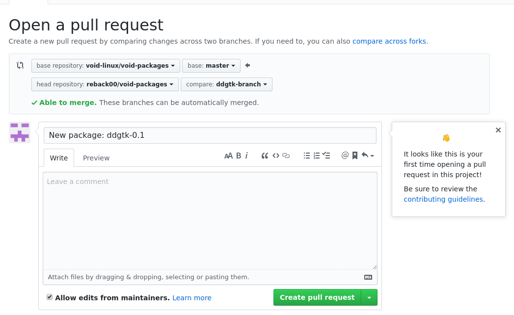 So there you have it. This is how you push a new package to Void Linux repo. Hope you have fun.